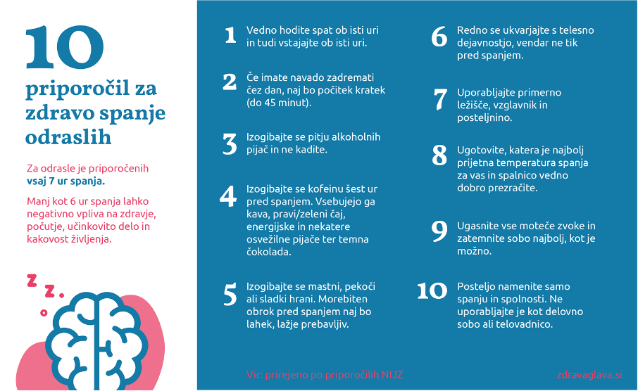 Slika 4: deset priporočil za zdravo spanje odraslih.