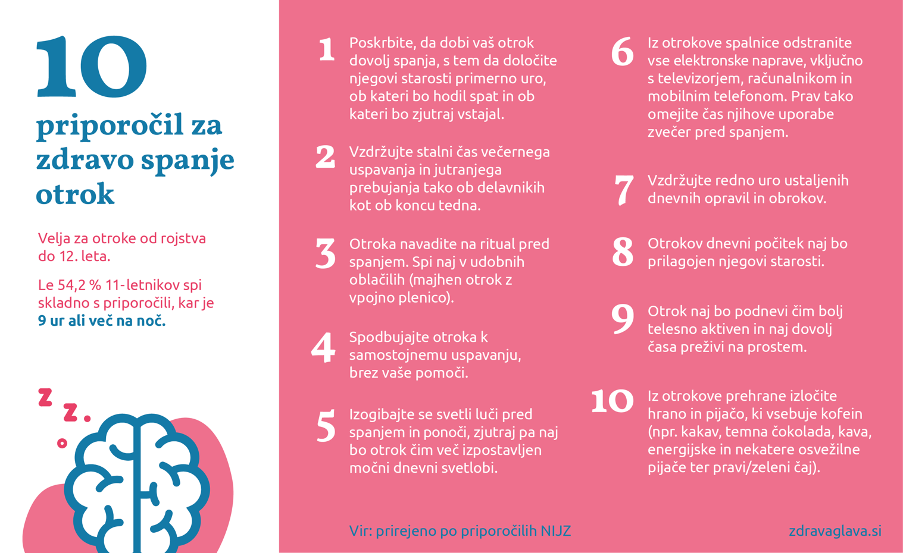 Slika 3: deset priporočil za zdravo spanje otrok.