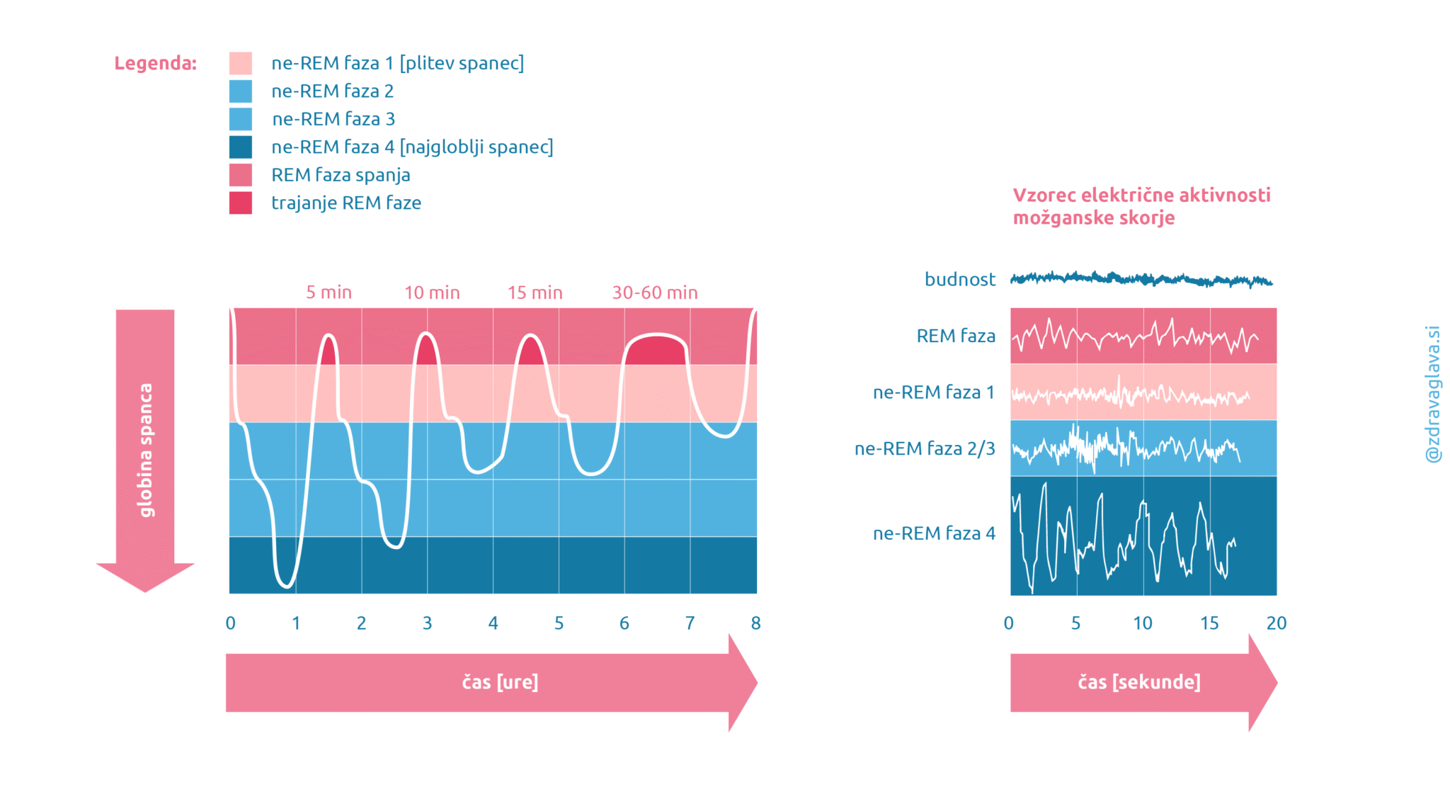 - 4. Pham CK, Sankari A, Slowik JM. Rapid Eye Movement Sleep Behavior Disorder. [Updated 2022 Dec 11]. In: StatPearls [Internet]. Treasure Island (FL): StatPearls Publishing; 2023. [Citirano 22 08 2023, dostopno na: https://www.ncbi.nlm.nih.gov/books/NBK555928/]