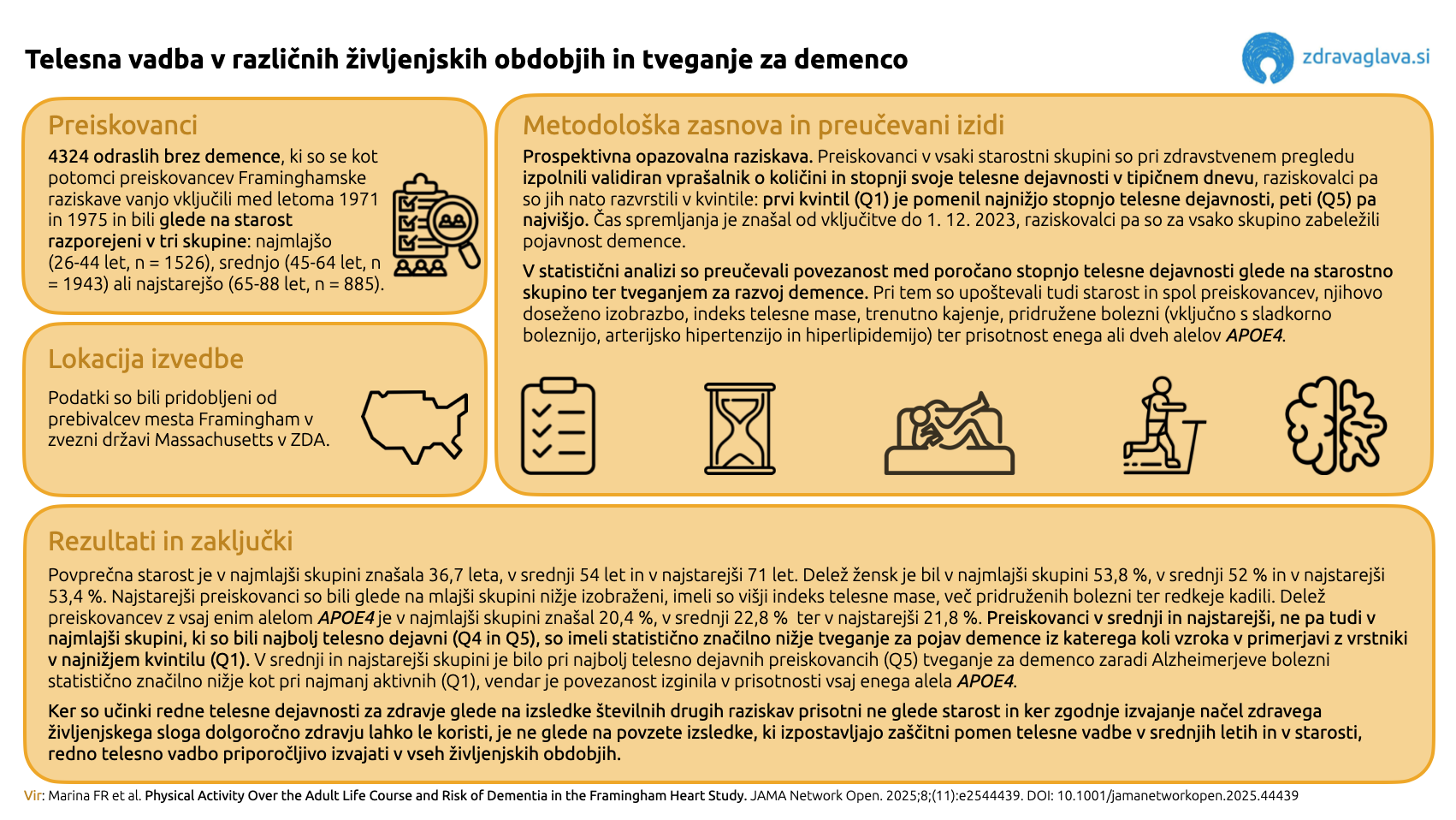 Telesna vadba v različnih življenjskih obdobjih in tveganje za demenco